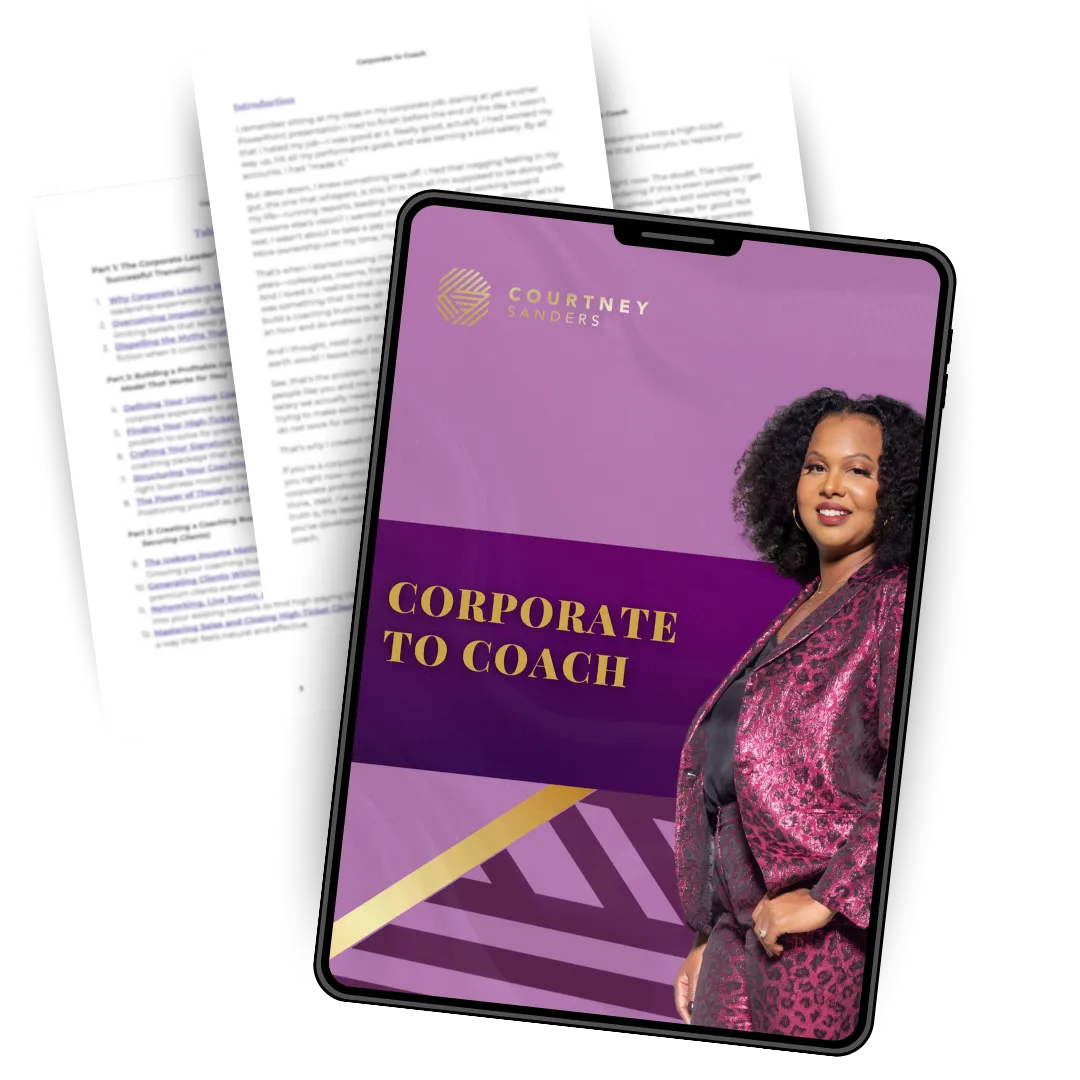 I have taken everything I learned from my years in corporate leadership and my transition into a 7+ figure coaching business and turned it into a step-by-step system. This framework is designed specifically for corporate professionals like you who are ready to step into coaching without the guesswork, wasted effort, or financial risk.